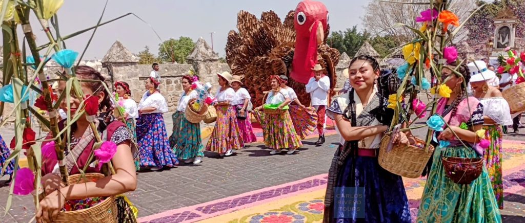 Jovenes ataviados con trajes para festejar la Santa Cruz en Huaquechula